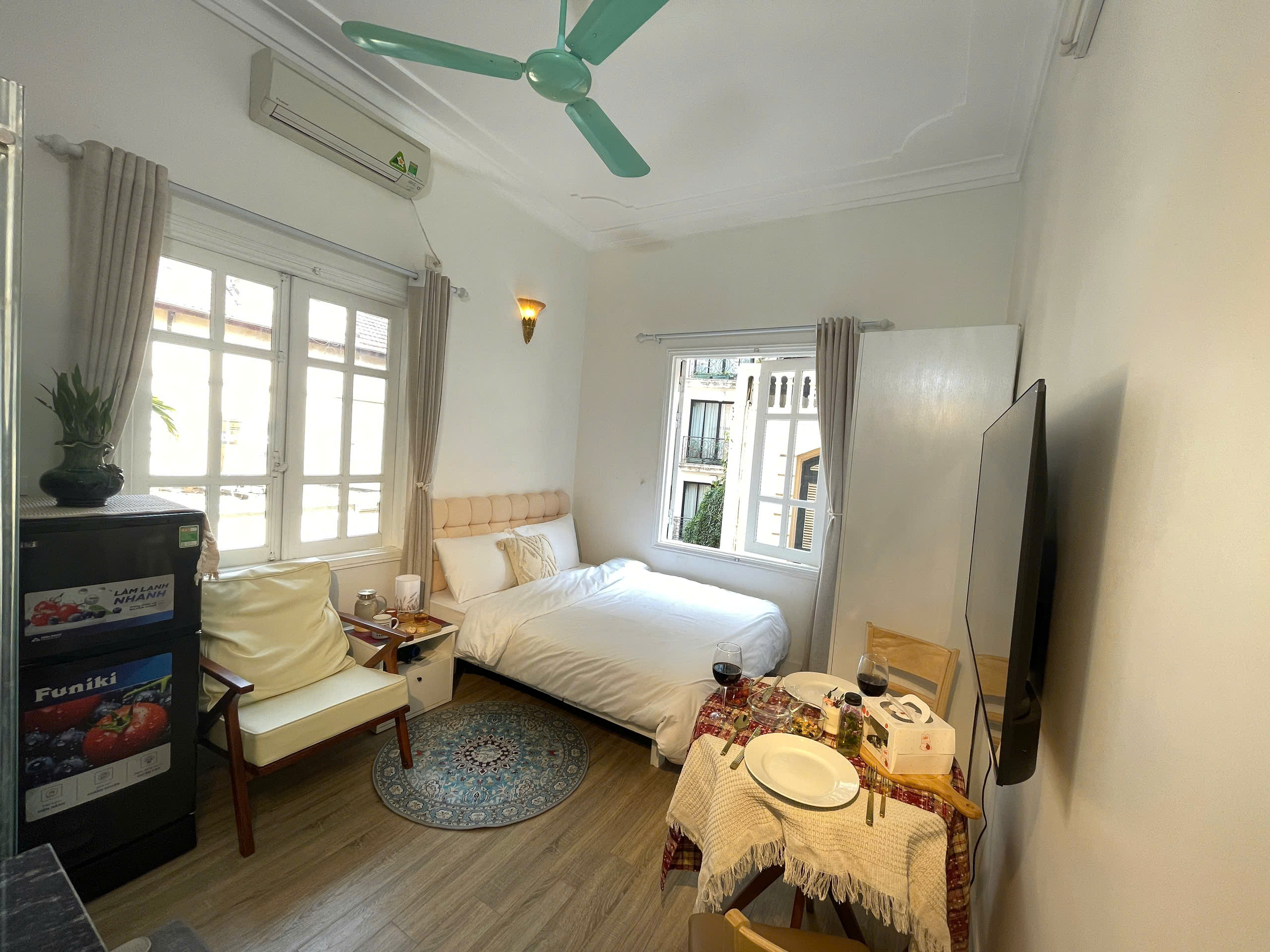 Với điều hòa không khí mát mẻ, quạt êm ái và ánh sáng tự nhiên từ các cửa sổ lớn, căn hộ của chúng tôi không chỉ là nơi lưu trú mà còn là chốn nghỉ dưỡng lý tưởng, mang đến sự tiện nghi, thoải mái và riêng tư tối đa cho mọi chuyến đi của bạn. Hãy trải nghiệm và cảm nhận sự khác biệt tại đây!